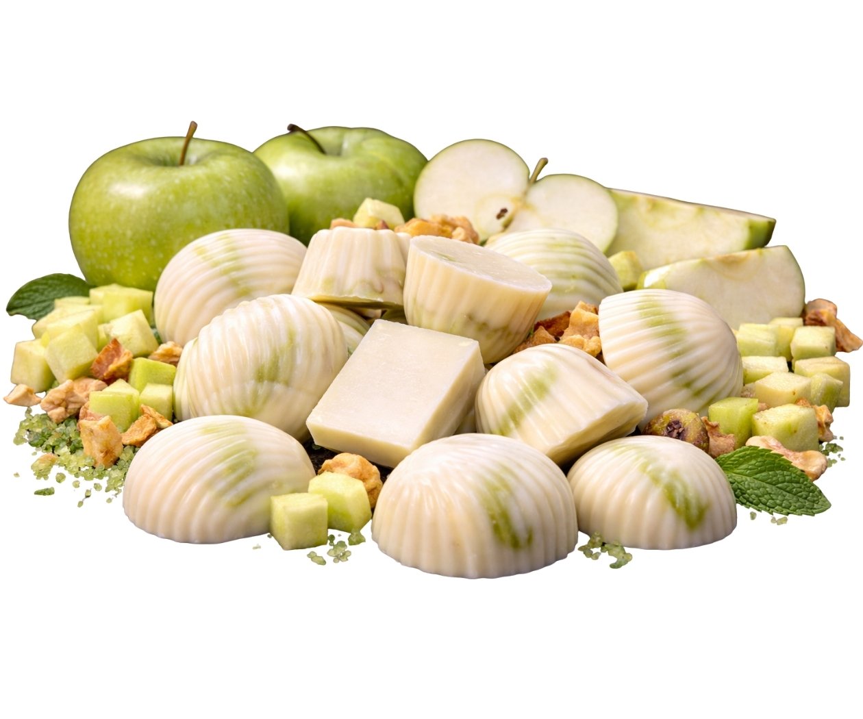 These white chocolate hazelnut fillings feature a creamy white chocolate shell with a smooth hazelnut base and a green apple-flavoured centre. The sweetness of white chocolate pairs with nutty notes and a subtle tangy apple flavour, creating a refreshing and balanced taste. Ideal for everyday snacking, dessert platters, or sharing with friends and family. Made using commonly accepted ingredients such as cocoa butter, milk solids, hazelnuts, green apple flavouring, sugar, and fats, each piece delivers consistent quality and texture. Positioned in the mid-range segment, this product offers good value for a fresh chocolate indulgence.